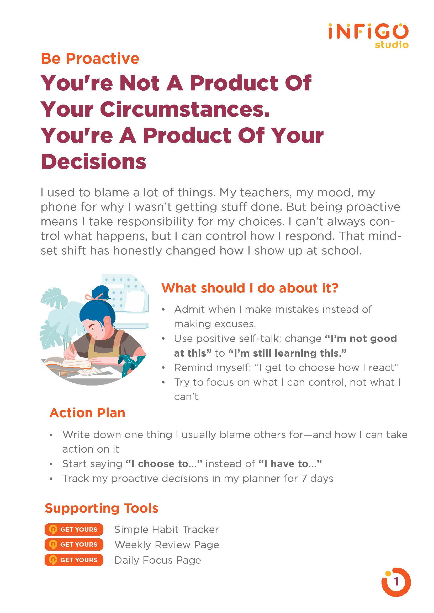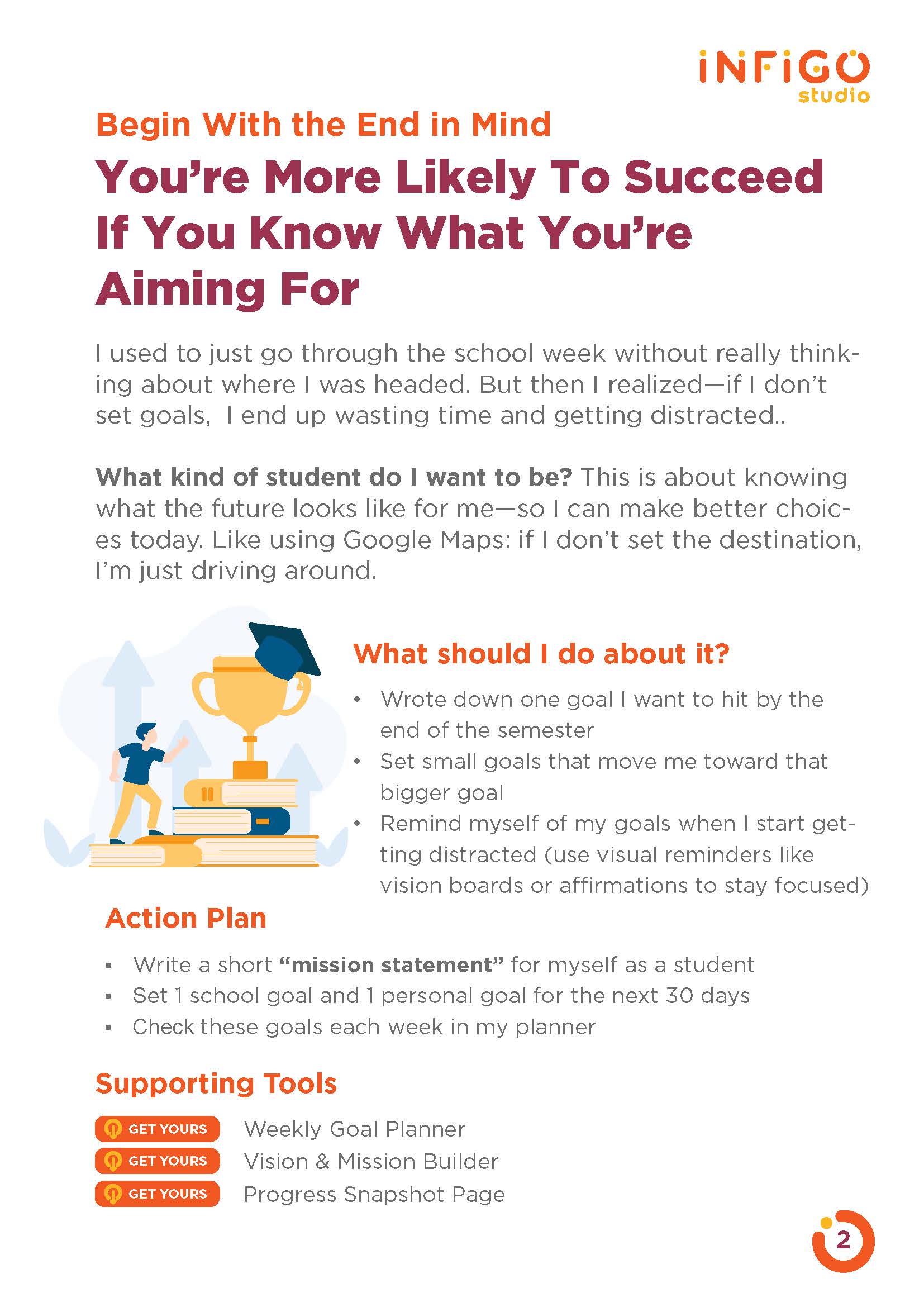 - Actionable Tips – Easy-to-follow advice inspired by 7 Habits of Highly Effective Teens and Eat That Frog! for Students.